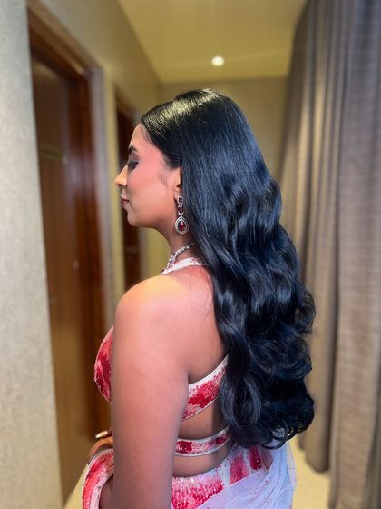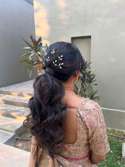 Hey! I'm Meghana Gowda, a hair artist from namma Bengaluru. Hairstyling is my heart, not just my job. I get to be part of big moments, like weddings – that first look on the bride’s face? Pure magic. Most clients become friends, and I’m lucky for all the lovely souls I meet. Whether it’s here in Bangalore or somewhere far, I just love making people feel beautiful. Sairam ❤️