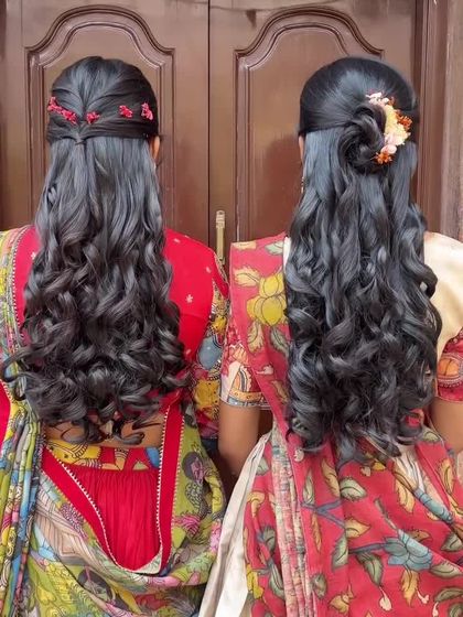 This is my specialty, the heart of South Indian bridal beauty. I create traditional, thick braids adorned with exquisite temple jewellery, known as jada, and fragrant jasmine flowers, perfect for your sacred muhurtham ceremony. Each braid is meticulously crafted to complement your silk saree and complete your divine bridal look.