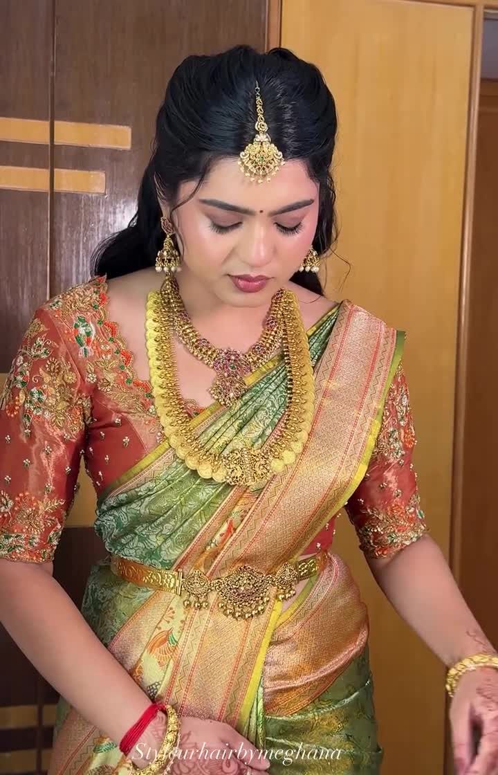 This is a handpicked collection of my signature work. It showcases the range of styles I love to create, from timeless South Indian muhurtham looks to chic, modern styles for your reception or sangeet. Each look is crafted to make you feel like the best version of yourself on your special day.