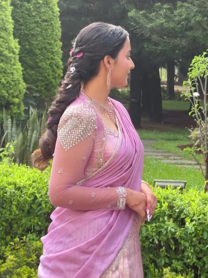 A perfect hairstyle deserves a perfect drape. As part of my complete bridal styling service, I provide expert saree and lehenga draping that enhances the beauty of your outfit and ensures you are comfortable. I specialize in traditional South Indian silk saree draping as well as modern and fusion styles.