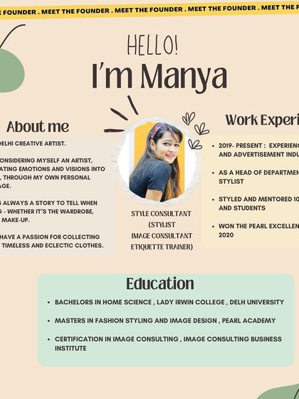 Hello, I'm Manya. Here's a little more about my journey as a creative artist and stylist. I believe styling is about telling a story, and I am passionate about both creating those stories for brands and teaching others how to find their own creative voice.