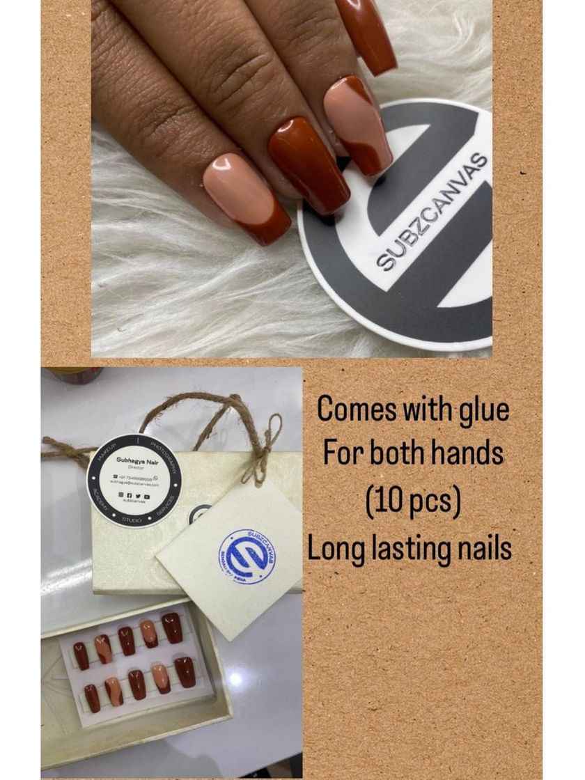 Get a salon-quality manicure in under 10 minutes. Each handmade set includes 10 reusable press-on nails and application glue, all packed in my signature Subzcanvas box.