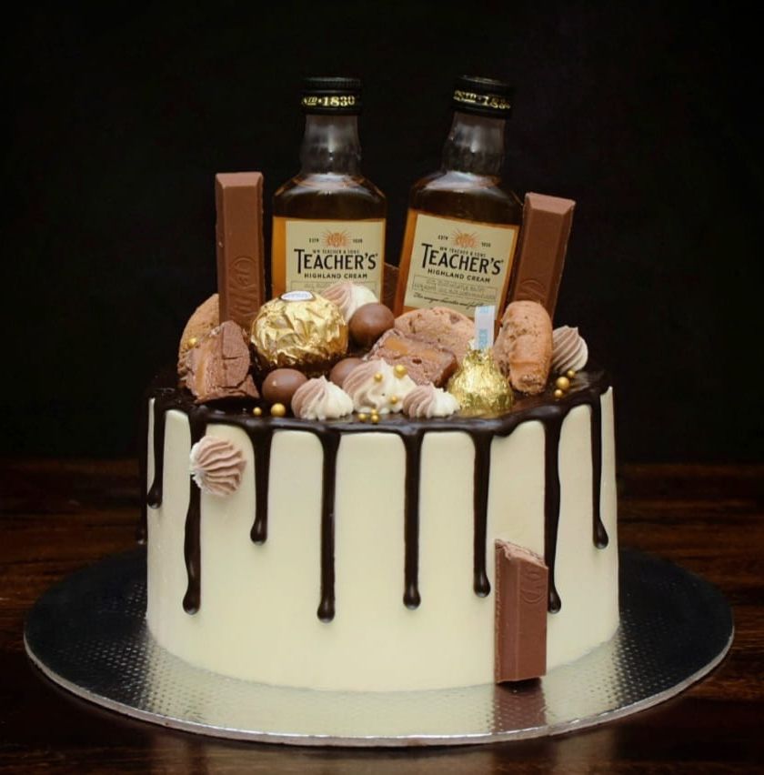 Perfect for milestone birthdays and adult celebrations, these cakes are all about indulgence. I can top your cake with miniature bottles of your favorite whiskey or rum, and load it up with chocolates and other treats.