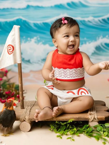 - Themes: Choice of 2 elaborate concepts. Options include Fantasy (Moana/Fairy), Cultural (Little Shiv/Janmashtami), or Modern (Boss Baby/Spa Day).