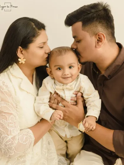 We’re known for a light and airy family portraits vibe. Think boho - earthy tones, rattan chairs, jute rugs, pampas grass. The studio in Girgaon (Mumbai) is cozy, not intimidating, and designed for you to relax. Love our usual look? Great. Want something different, even traditional like chotishi rakhumai setups? We’re always up for mixing it up.