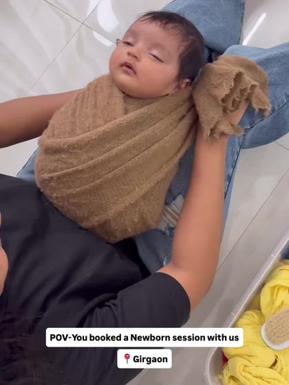 Our studio in Girgaon is clean, cozy, and warm. We've handled hundreds of babies, so we know how to keep them safe and comfy. We use gentle tricks (white noise, swaddling) and always have a light hand with posing. For those viral ‘head in hands’ shots, we edit out supporting hands so your baby’s never at risk - safety is non-negotiable.