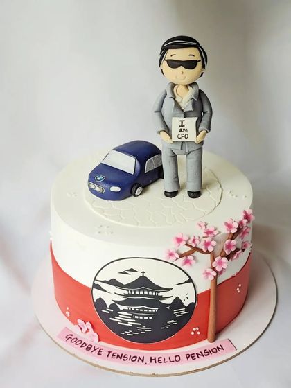 I make fully eggless, custom cakes for corporate events and office occasions, including logo cakes, brand replicas, and personalized farewell cakes, with on-site assembly for large events.