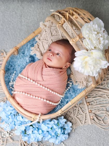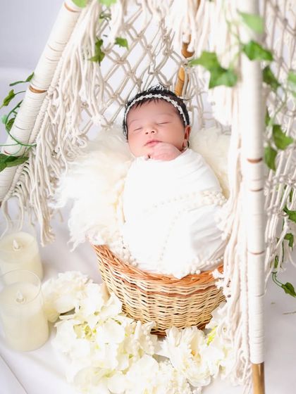 I specialize in capturing precious moments of your newborn through creative and adorable setups. My sessions include carefully curated themes using props like baskets, blankets, flowers, and themed decorations to create whimsical, festive, and serene environments.