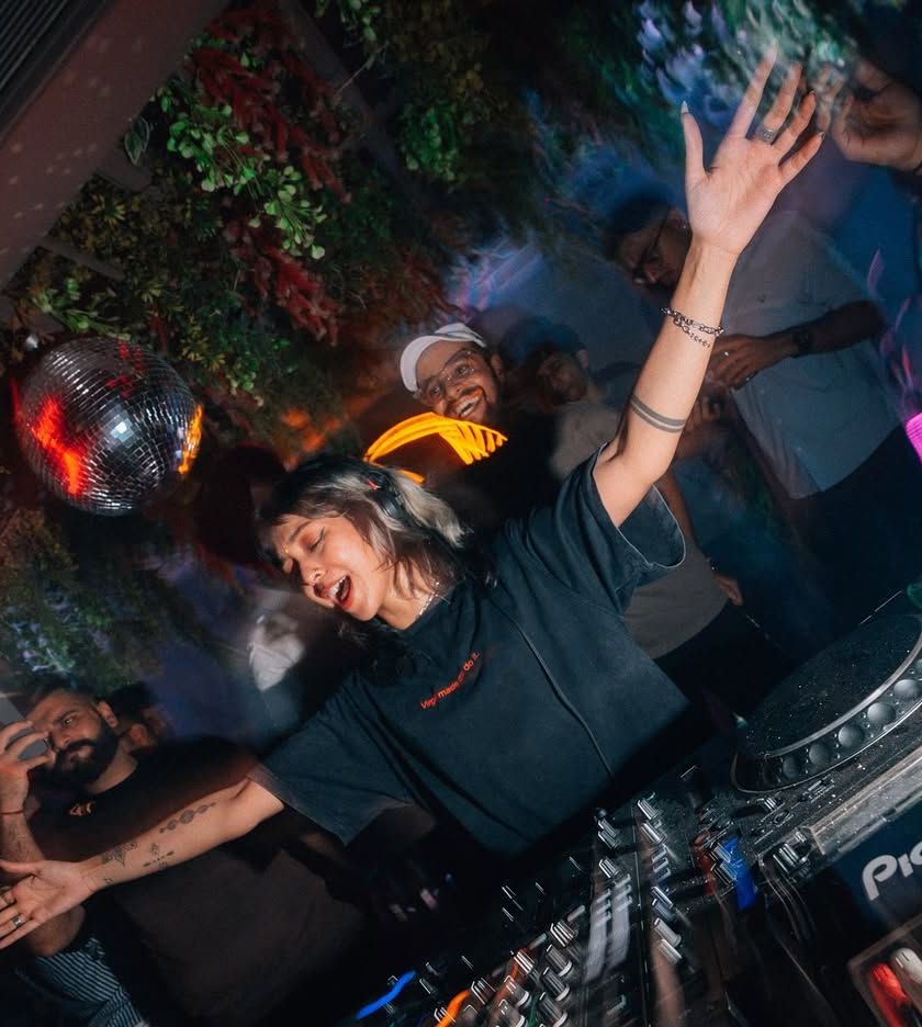 This is my happy place, behind the console with a dancefloor full of energy. I play everything from packed club nights in Mumbai to major festivals across the country, making sure the vibe is always high and the floor is always sweaty.