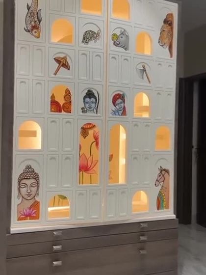 - Surfaces: Back panels of Puja units, double-door Mandir shutters, or large wall-mounted panels.