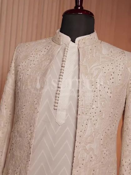 I design these pieces for life's most grand occasions, especially weddings. My sherwanis and bandhgalas are crafted with a deep respect for tradition but designed for the modern groom, featuring everything from intricate hand-embroidery and unique motifs to classic, understated elegance. Each garment is a statement of heritage and personal style.