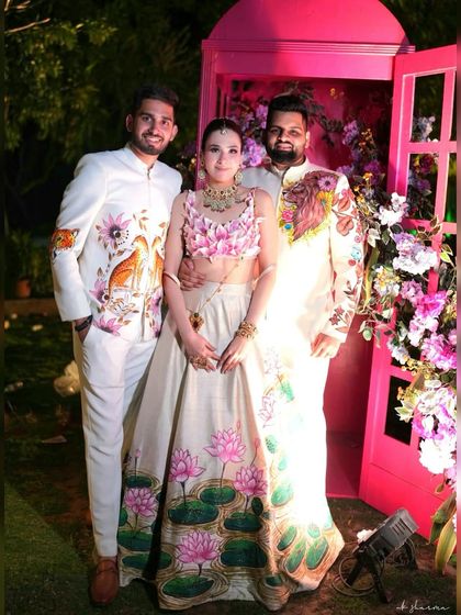 Make your special day unforgettable with a one-of-a-kind, hand-painted garment. I create custom bandhgalas, jackets, and suits for grooms, groomsmen, and guests, featuring designs that range from traditional motifs to personal symbols, ensuring you look and feel exceptional.