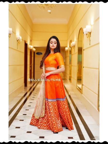 Our lehengas can be coordinated with matching blouses and dupattas, featuring versatile styling options to create a complete bridal ensemble.