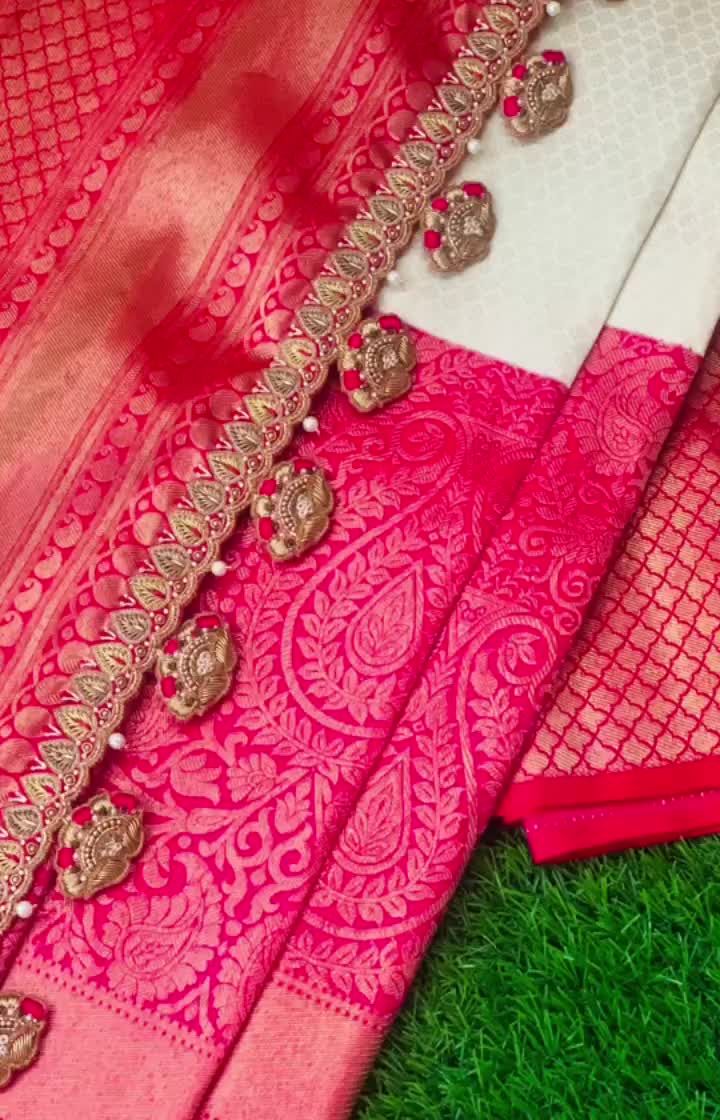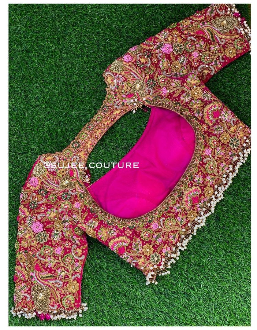 My specialty is creating made-to-measure designer blouses that fit perfectly. I focus on hand embroidery using traditional techniques and materials like zardozi and pearls, ensuring each piece is unique for your wedding saree.