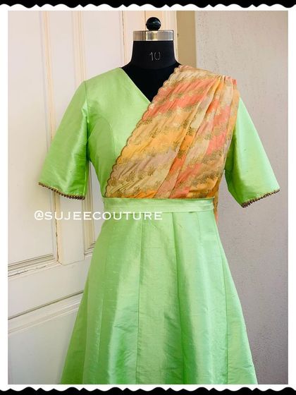 - Bespoke blouses for pairing with existing skirts or dhotis, featuring fun bits like puff sleeves, peplum cuts, and playful embroidery