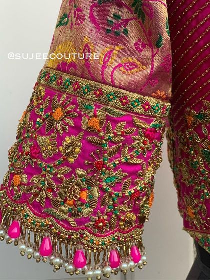 Hey, Sujee here. We kicked off Sujee Couture bang in the middle of lockdown - mad times, but my team pulled through and our first clients gave us so much love. Fashion for me is all about bold moves, making a statement. Nothing beats seeing a bride or someone like Chaitra Vasudevan glowing in our handcrafted bridal blouses. Every stitch, every bead, it’s worth it. Super thankful for this wild ride and the folks who’ve stood by us.