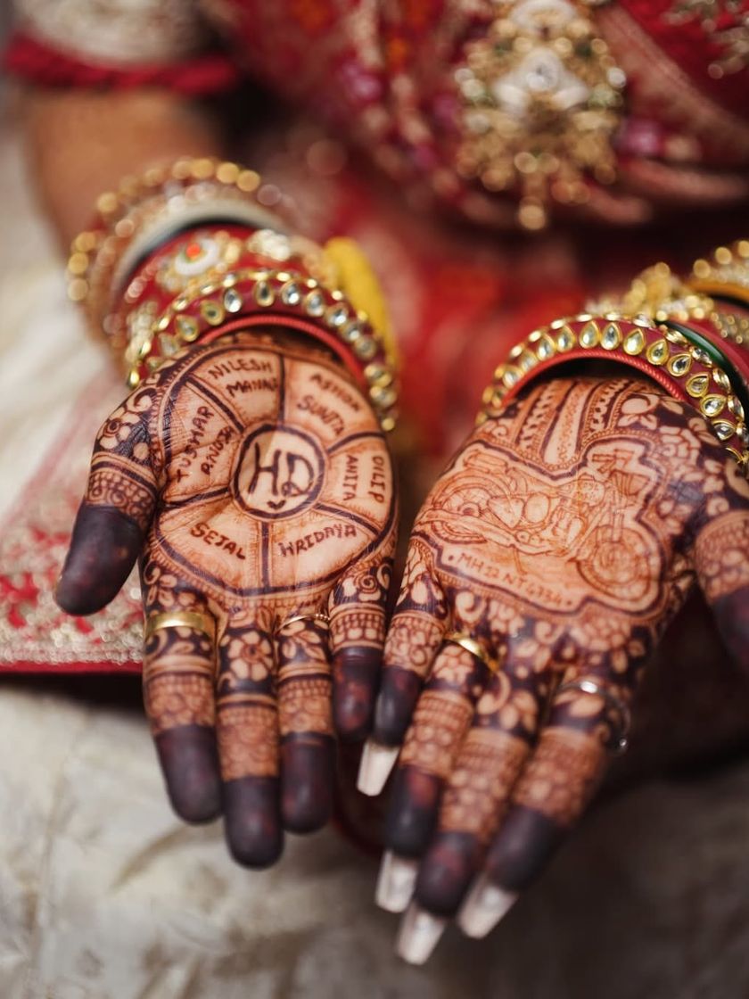Your mehendi should be as unique as you are. I specialize in creating personalized designs that tell your story, whether it's by including your initials, wedding date, portraits of you and your partner, or even your favorite motorcycle. If you can dream it, I can draw it in henna.