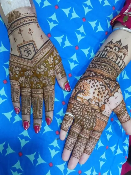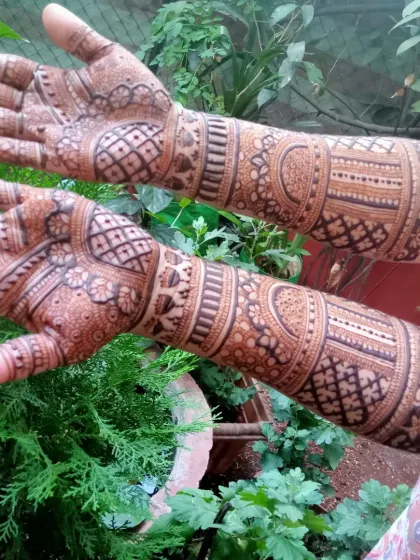 I specialize in creating traditional festival mehendi designs that enhance the festive spirit of occasions like Karvachauth, Diwali, and Sankranti. My designs feature classic motifs like lotuses, paisleys, and cultural symbols while maintaining elegant detailing and symmetry.