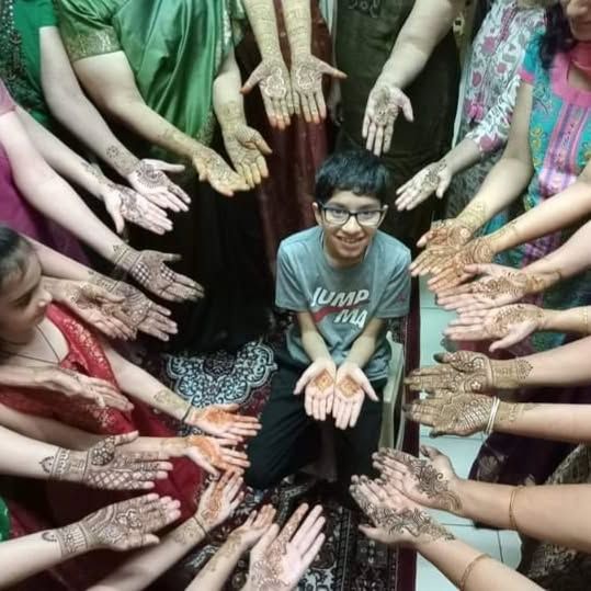 Mehendi is best enjoyed with friends and family! I and my team are fully equipped to handle group bookings for festivals, weddings, and parties. This gallery captures the fun and festive atmosphere of a group mehendi session.