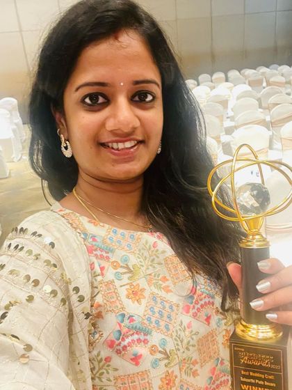 Vanakkam! I’m Krithika Devi, founder of Sukeerthi Plate Decors. Started off in Tiruppur, crafting handmade decor from home, now moved to Bangalore with my family. Ten years in, still loving every bit - from Coimbatore to Hosur, I get to add romba nalla vibration (very good energy) to weddings and other functions with my Marapachi dolls and art. Got ‘Best Plate Decor’ award in 2022, but honestly, seeing my work in someone’s big moment is the real reward.