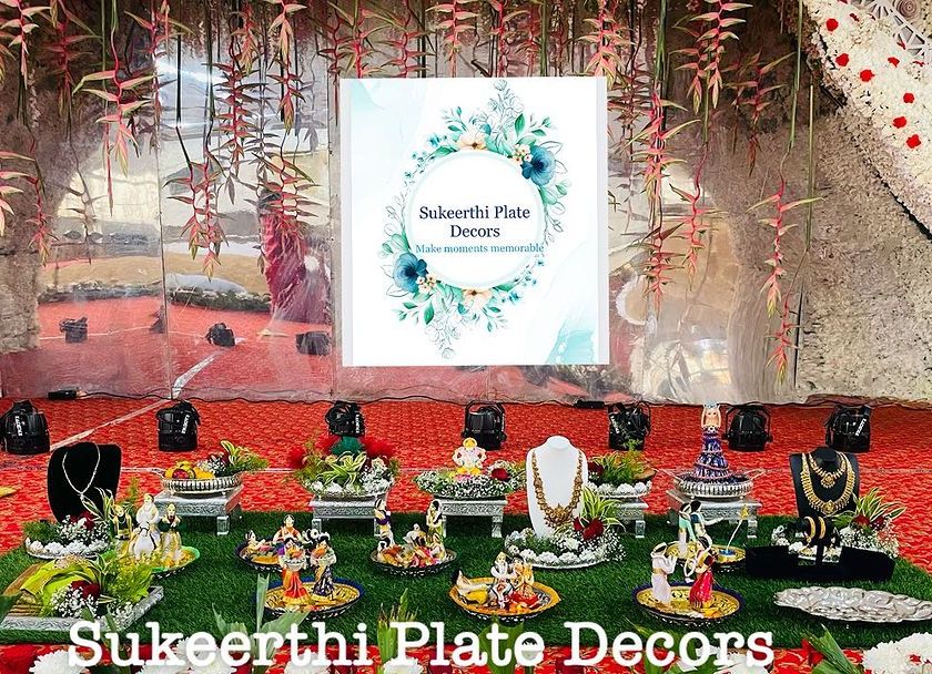 From the 'Uruthi Varthai' to the grand wedding day, I design seer platters that tell your story. I specialize in couple dolls, personalized photo cutouts, and elegant arrangements on brass, German silver, or traditional plates to match your theme.