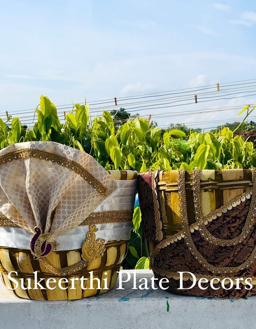 I create custom decorated Uppukudai, or salt baskets, dressed to represent the bride and groom, a beautiful symbol for any wedding. I also design decorative umbrellas for the Kasi Yatra ritual, ensuring every part of the ceremony is special.