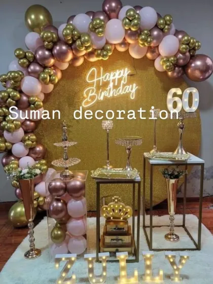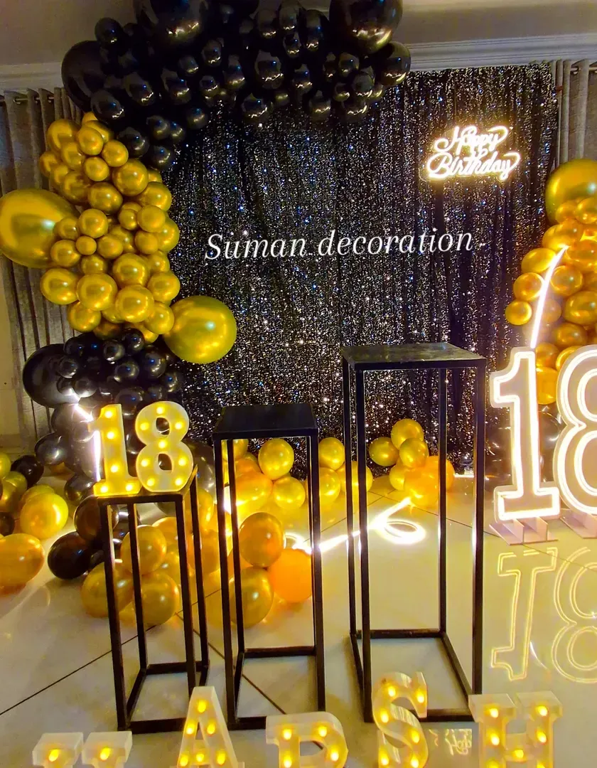 I design modern and elegant setups for any birthday, including milestones like 18, 21, 50, or 90. I use balloon ring arches, neon signs, light-up numbers, and custom color schemes to create the perfect photo-worthy backdrop for your celebration.
