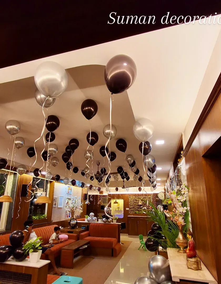 If you don't need a full backdrop, I also offer simpler decorations to make any room feel festive. This includes filling the ceiling with helium balloons or providing custom balloon bouquets for any occasion.
