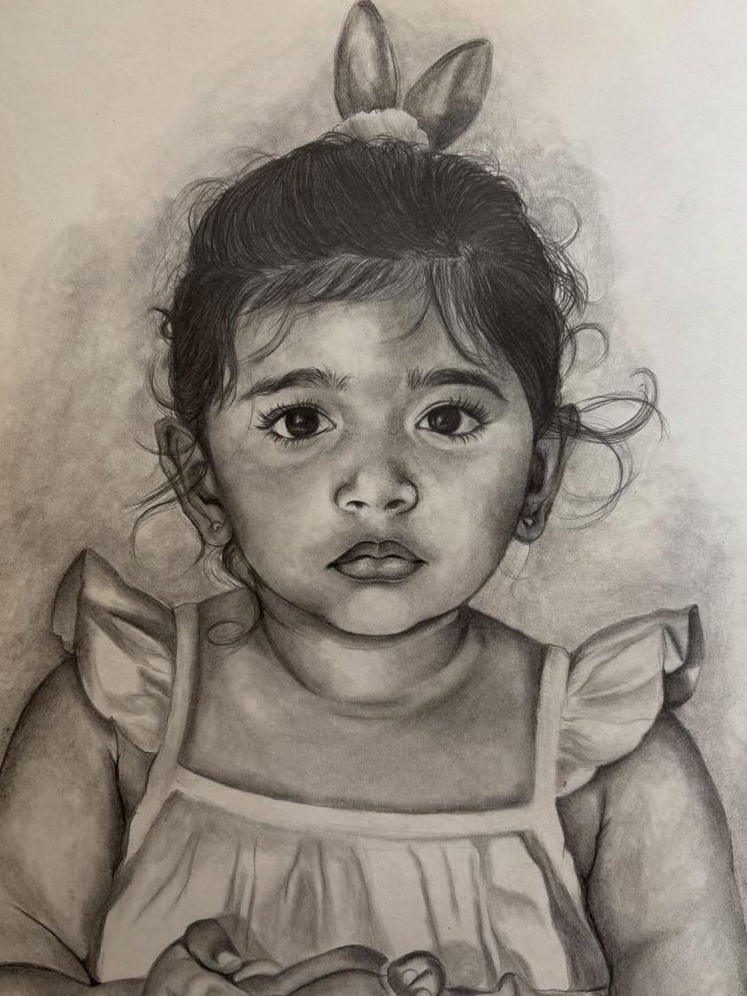 There is a special kind of joy in capturing the pure innocence of children. I create detailed portraits of babies and kids, available as classic pencil sketches for a timeless feel or vibrant acrylic paintings. These custom artworks make for heartfelt keepsakes that freeze a fleeting moment in time.