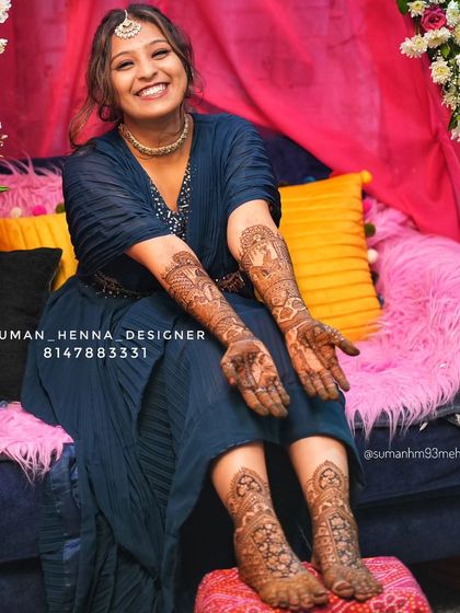 I specialize in creating intricate and personalized bridal mehndi designs that capture your wedding's essence. My designs incorporate traditional motifs, floral patterns, and symbolic elements like peacocks and elephants, with a focus on symmetrical patterns and fine detailing.