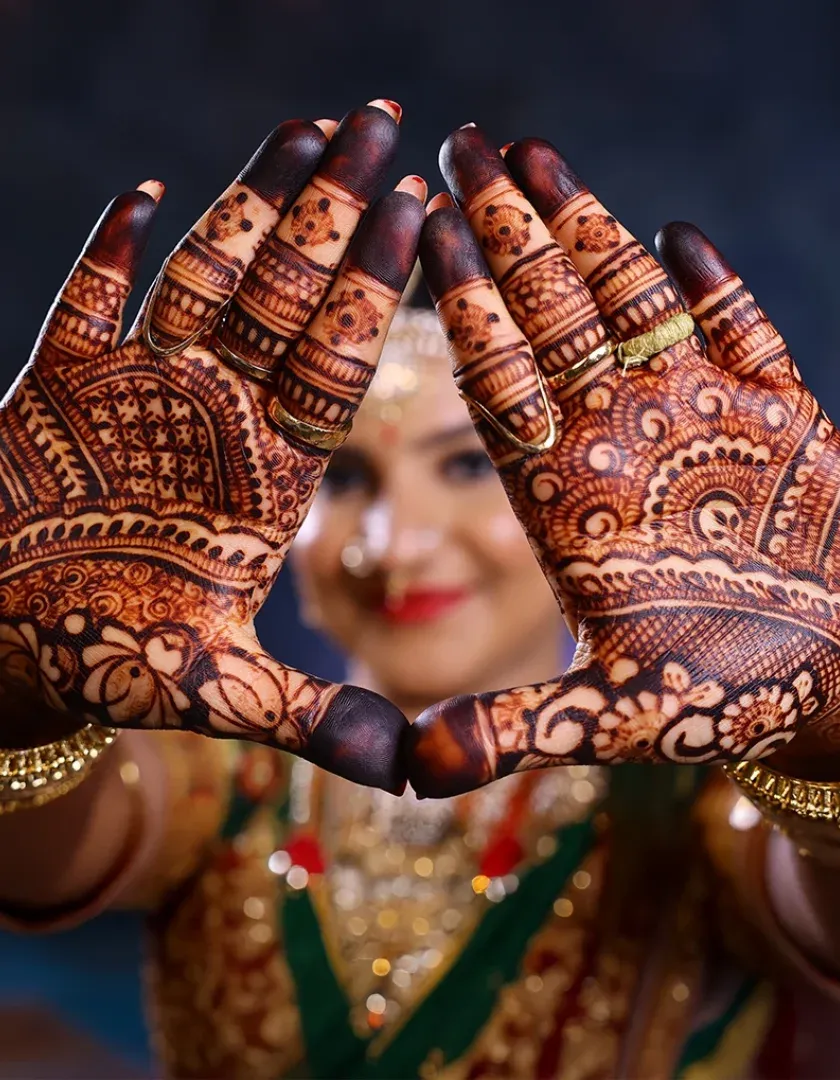 Your hands can tell your love story. I specialize in weaving personal elements like couple portraits, names, special dates, or meaningful symbols directly into your bridal mehndi.