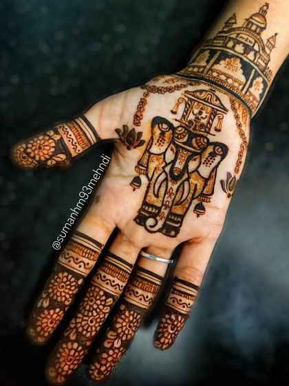 - Full storytelling mehndi: your wedding journey, traditional scenes like Doli or Baraat, even your wedding date in the design.