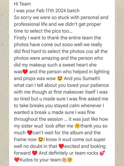 All-Inclusive Experience - We sort out everything - designer gowns, sarees, makeup, props. You just show up and relax.