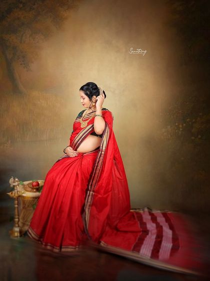 We specialize in capturing the beauty of pregnancy through culturally-rich maternity photography. Our traditional sessions feature elegant sarees and lehengas, complemented by traditional jewelry and accessories, all shot against luxurious studio backdrops.