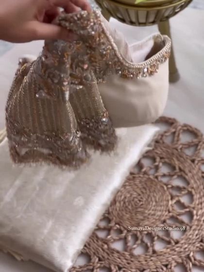 My bridal blouses are the heart of our couture service. Each one is a canvas for intricate hand embroidery, featuring zardozi, aari work, and semi-precious stones that bring heritage motifs to life. I design every piece to be a statement of regal elegance and personal significance.