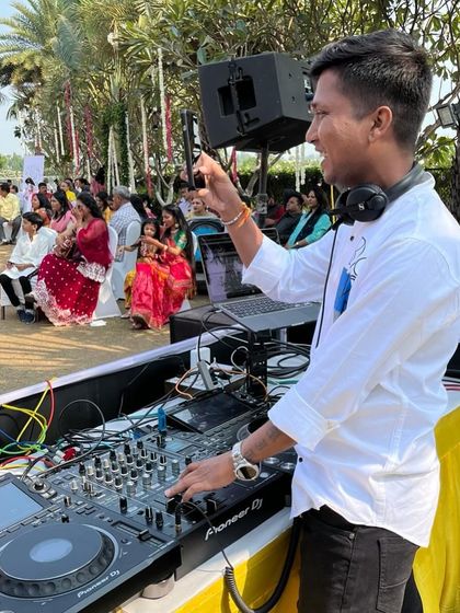 I DJ weddings with custom playlists, retro Bollywood music, live video mixing on LED screens, and a mobile sound setup for baraat, covering all events and travelling anywhere you need.