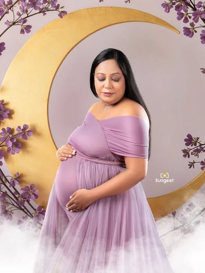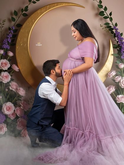 I do maternity photoshoots with options for solo, couple, or family, provide gowns and sarees, props, help with posing, and offer both studio and outdoor sessions.