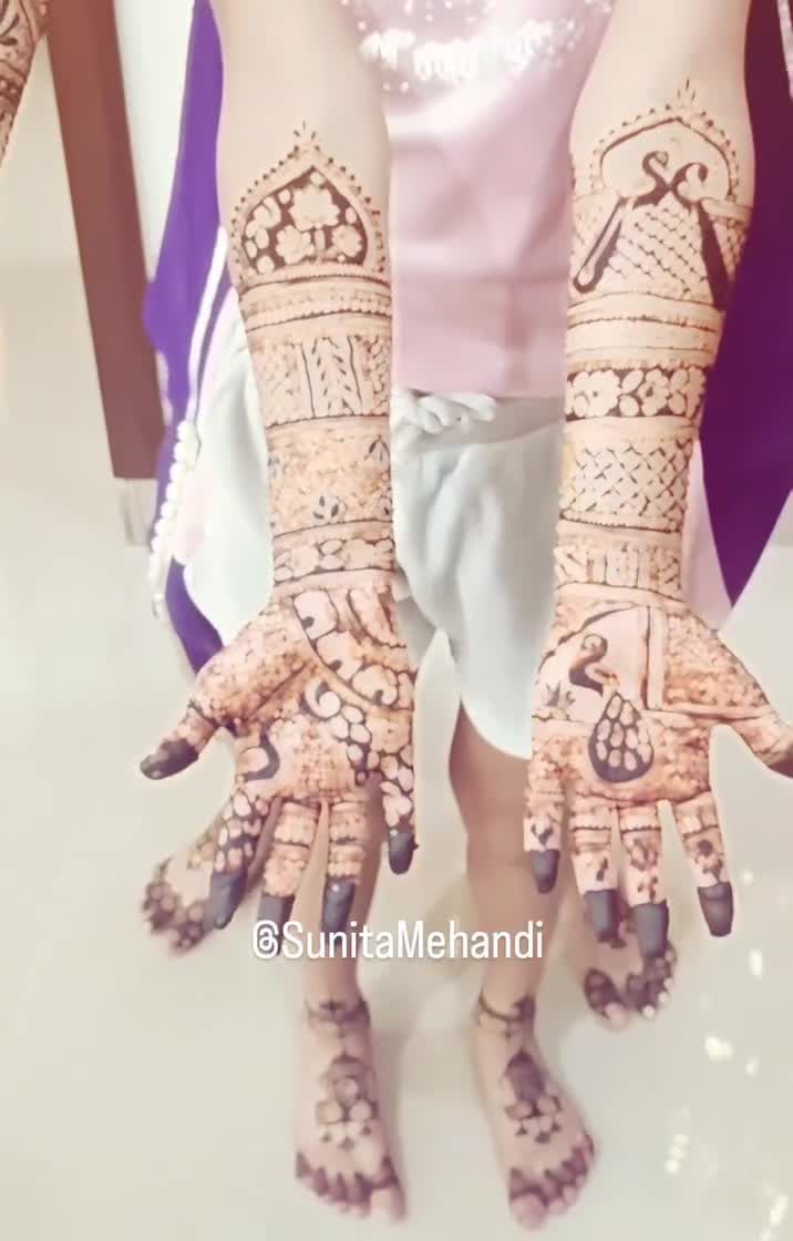 A complete bridal look includes beautiful mehendi on both hands and feet. Here you can see examples of how I coordinate designs to create a stunning, cohesive look from your fingertips to your toes.