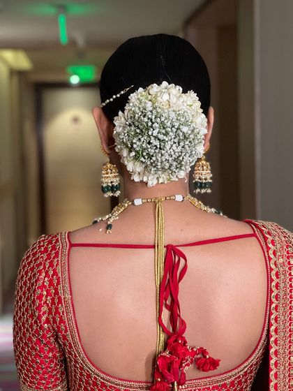 Bridal & Occasion Hairstyling - I style real brides—Indian bridal bun with gajra, open wave bridal hair, sleek ponytails. We find your look together.