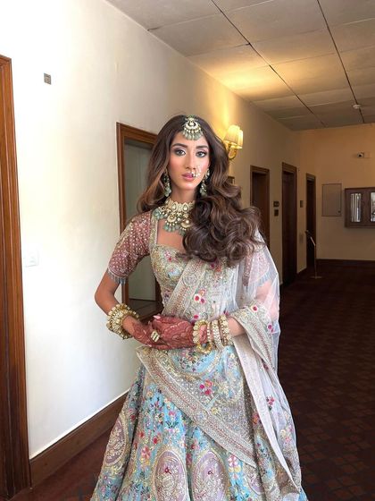A hairstyle is not just about the hair; it's about how it completes the entire bridal vision. This gallery shows my work in context, featuring real brides on their wedding day. You can see how I design hairstyles that harmonize with different types of lehengas, sarees, dupattas, and jewelry for various ceremonies.