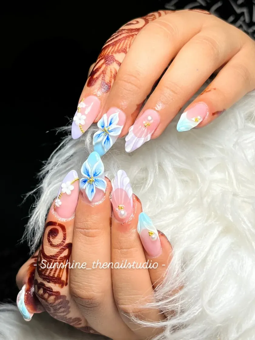 This is where I get to be extra creative. I use acrylic to build custom 3D elements directly onto the nail, from delicate flowers and bows to playful teddy bears and seashells, making your nails truly stand out.