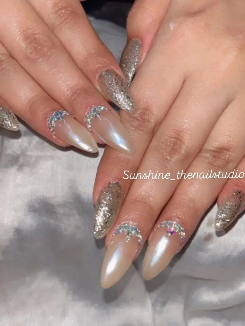 For those who love to shine, this collection is all about sparkle and dimension. I use high-quality chrome powders for a mirror-like finish, cat eye gel for a mesmerizing magnetic effect, and various glitters for ultimate bling.