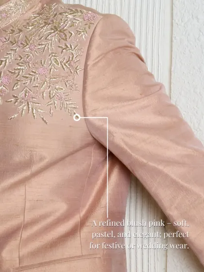 Everything starts with a chat. I ask about your vibe, the event, and what you actually like. Then we shortlist styles - maybe you’re after a hand-embroidered sherwani for groom, or want to try out modern Jodhpuri suit designs. Measurements? I’m picky, so it sits just right. We do a few fittings, tweak stuff till it feels perfect - not just for the mirror, but for you.