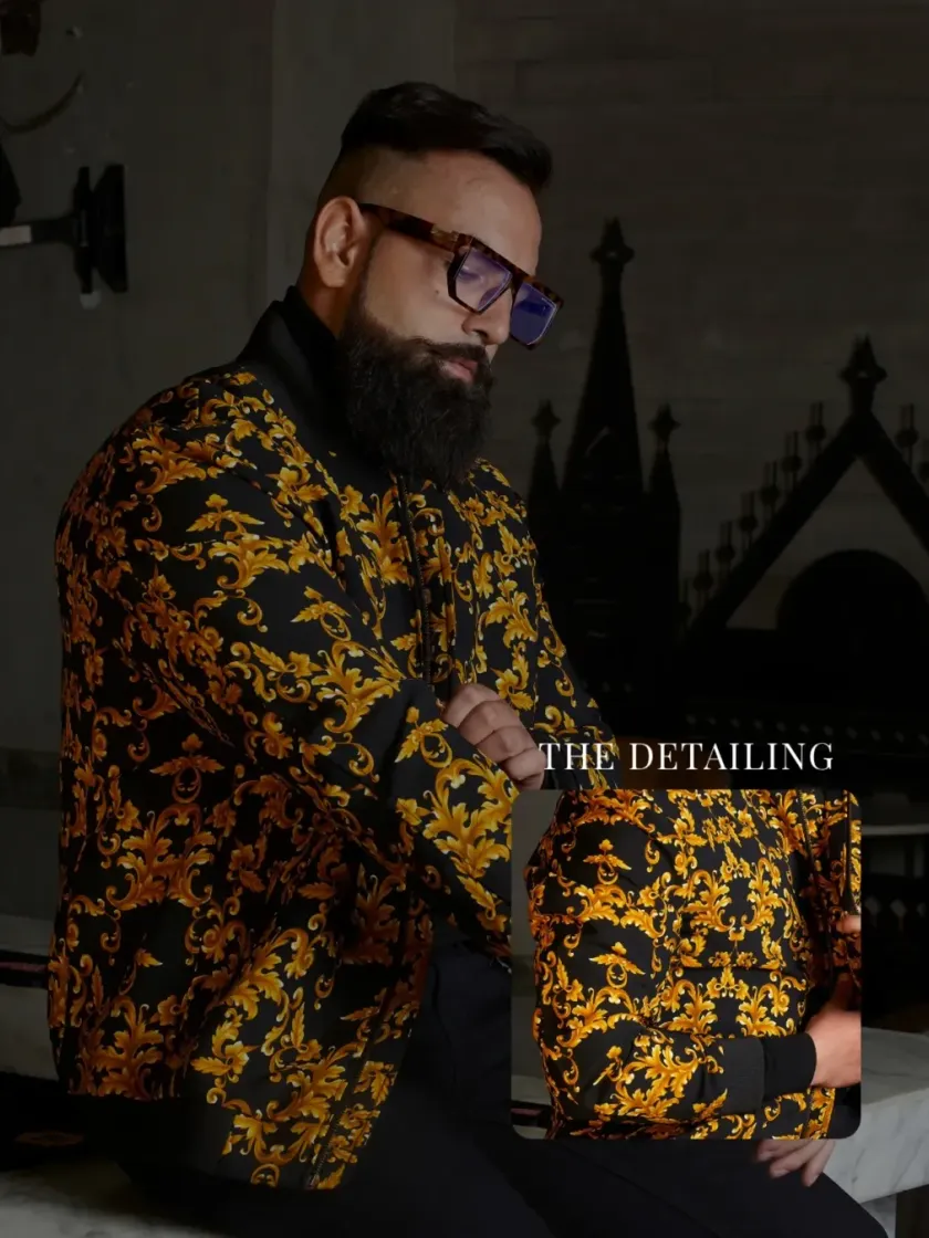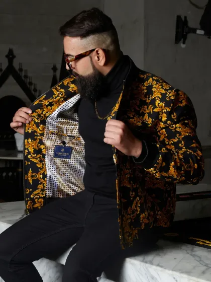 My collection of jackets and outerwear is for the man who views every day as an opportunity for style. I use premium materials like suede, corduroy, and wool blends to create unique pieces, including bold printed bomber jackets, two-toned suede jackets, and structured military coats.