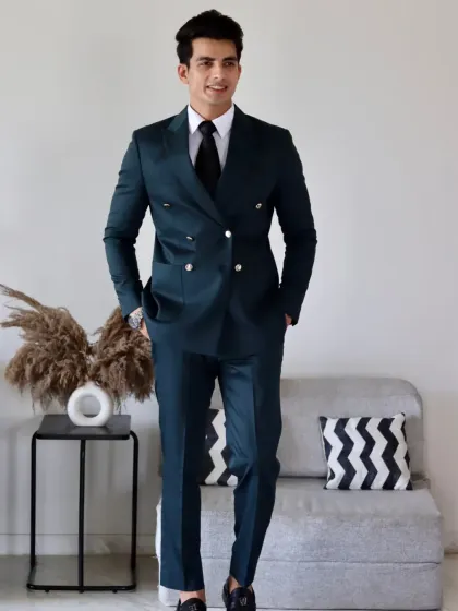 I design modern ensembles for the gentleman who values coordinated style and comfort. This collection features sharp, double-breasted suits in contemporary colors like deep teal, as well as versatile co-ord sets in premium linen and wool blends, perfect for both formal and smart-casual settings.