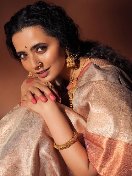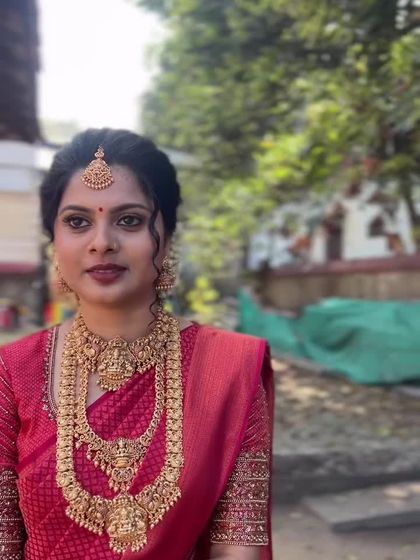 I do bridal makeup that matches your style and culture, travel to your location, and make sure you look your best with a team for hair, saree draping, and styling.