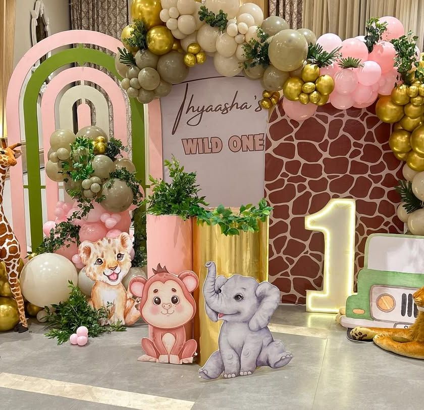 We specialize in creating fun, themed decorations for birthdays, especially for milestones like the first birthday or half-birthday. Our services cover popular themes like jungle safari, sunshine, and unicorns, complete with custom backdrops, character cutouts, and personalized signs.