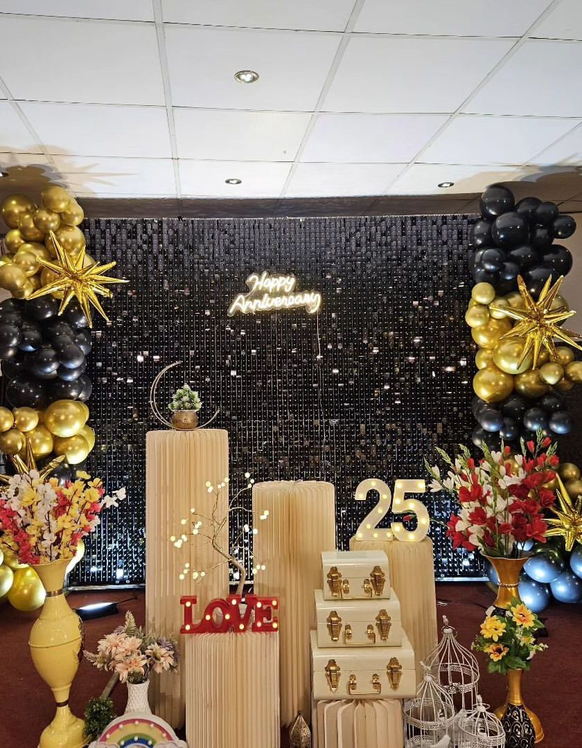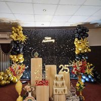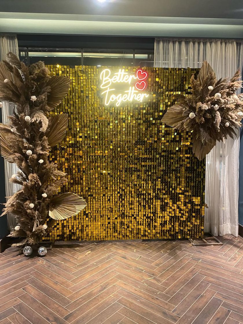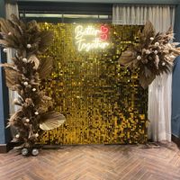Add a touch of modern glamour to your event with our trendy backdrops. We offer eye-catching shimmer walls in various colors like black and gold, paired with custom neon signs to create the perfect photo opportunity for your proposal or anniversary.