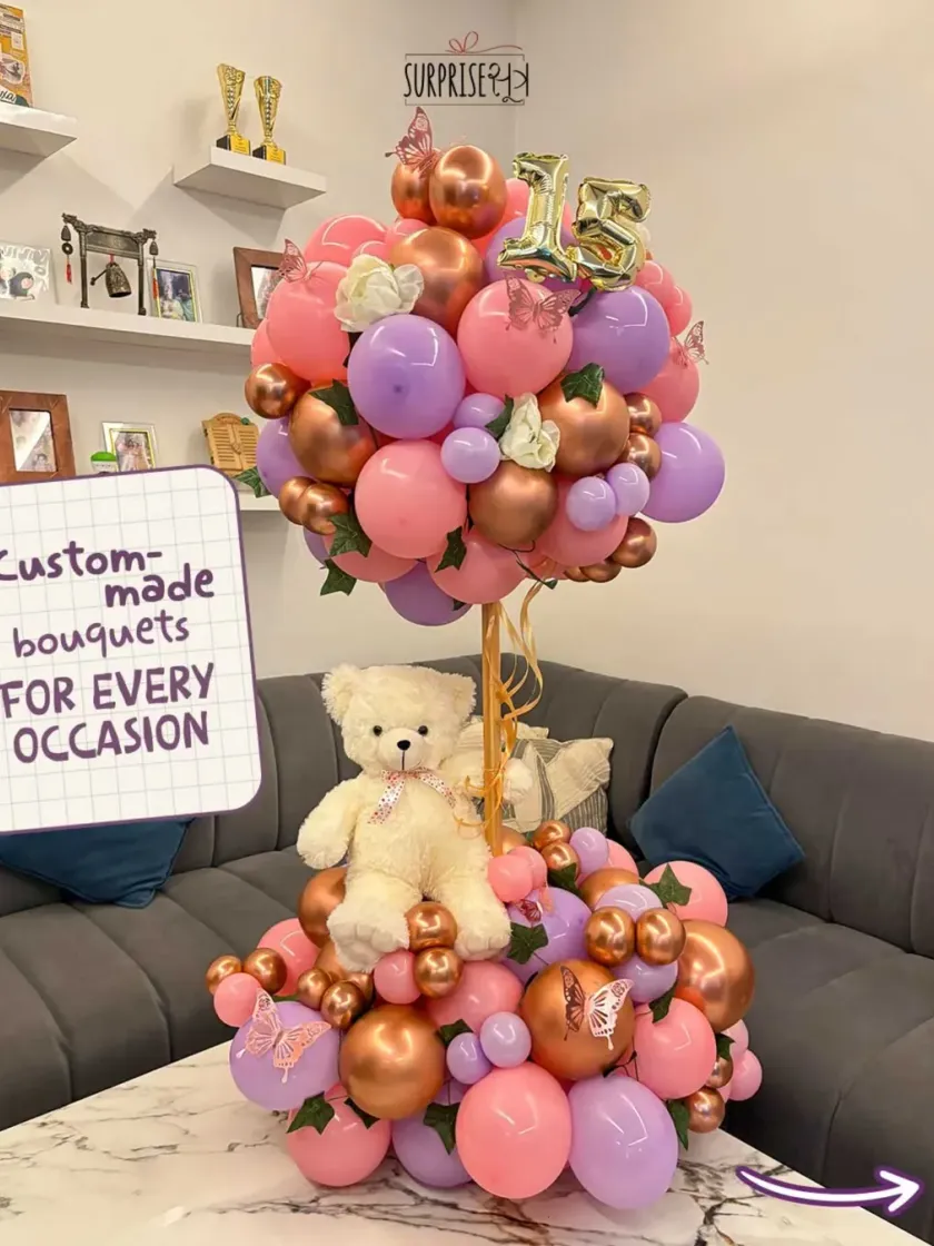 Sometimes, a grand gesture comes in a beautiful bouquet. I design custom balloon bouquets and arrangements for every occasion, whether it's a birthday, an anniversary, or a baby announcement. From jungle-themed birthday bouquets to elegant hot-air balloon arrangements with dried flowers, these are perfect for home delivery and last-minute surprises.