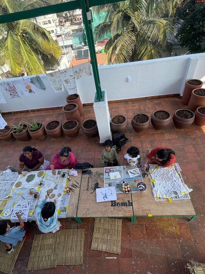 Welcome to our Jayanagar home. It's a flexible, multi-purpose environment with a rooftop play area, a bouldering wall, and cozy corners designed to inspire creativity, movement, and community learning.